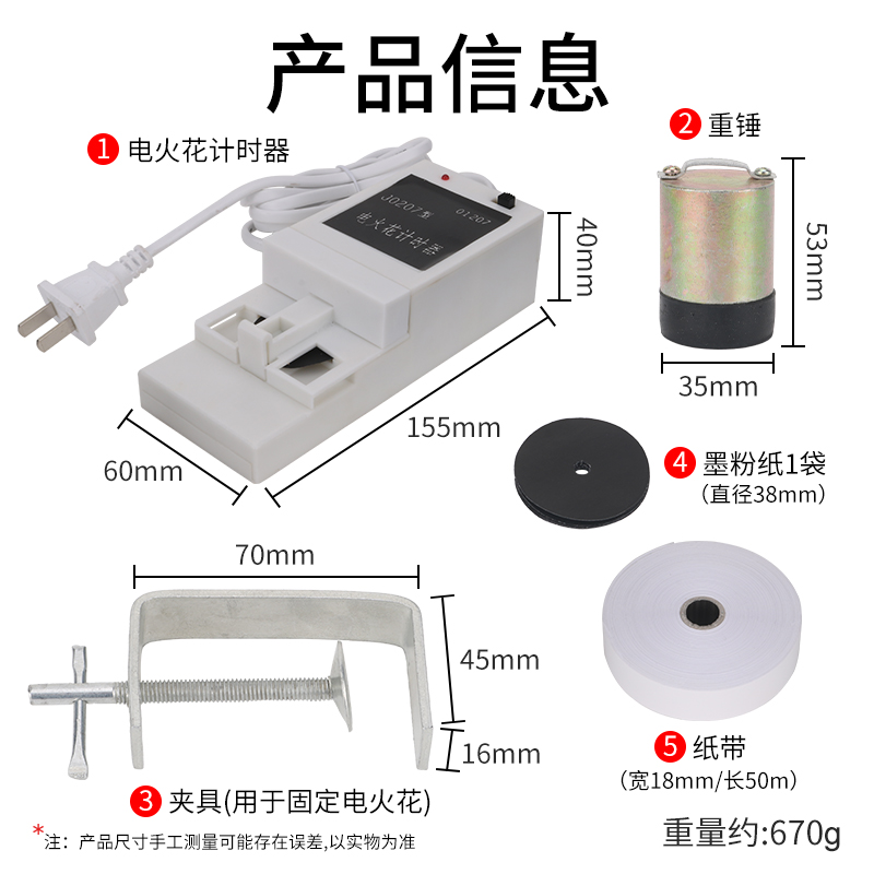 电火花打点计时器电磁重锤墨粉纸带轨道小车物理测平均重力加速度