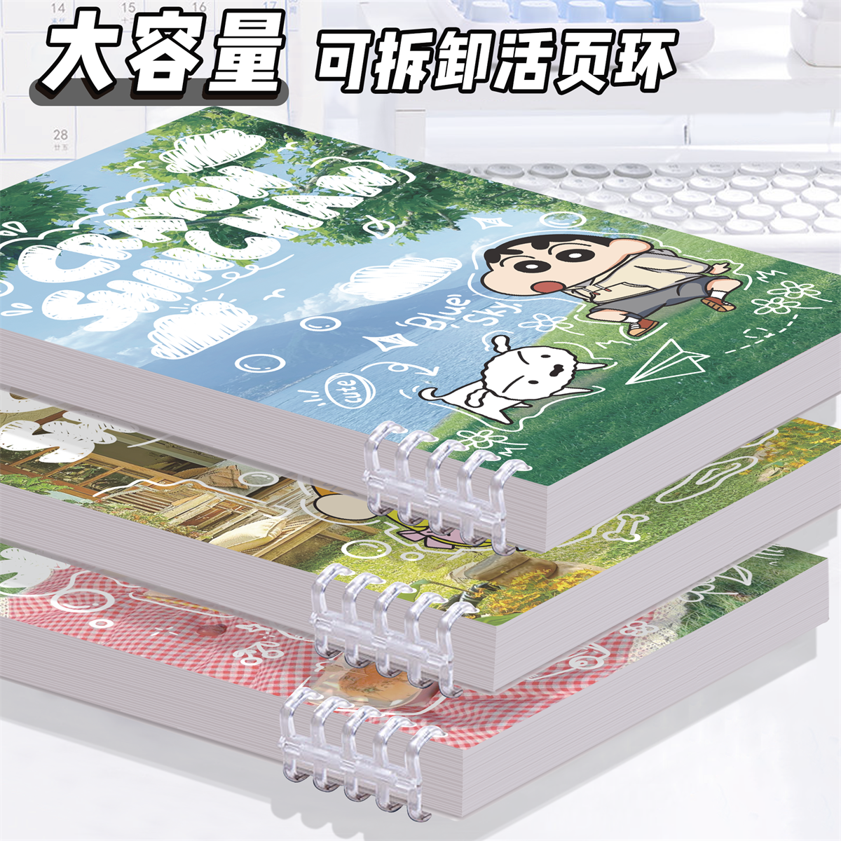 ins可爱蜡笔小新踏青活页本学生高颜值可拆卸横线笔记本学习通用