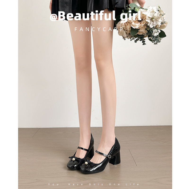 [不二鞋坊]玛丽珍鞋2025年春季新款法式真皮蝴蝶结中粗高跟单鞋女