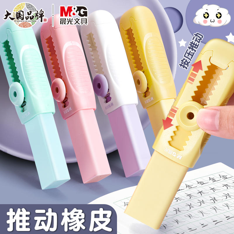 晨光推动橡皮冰淇淋彩色橡皮擦小学生专用推拉式无毒象皮不留痕无碎屑儿童幼儿园伸缩擦字成线美术4b橡皮文具