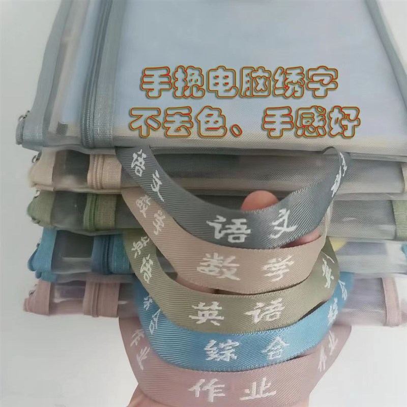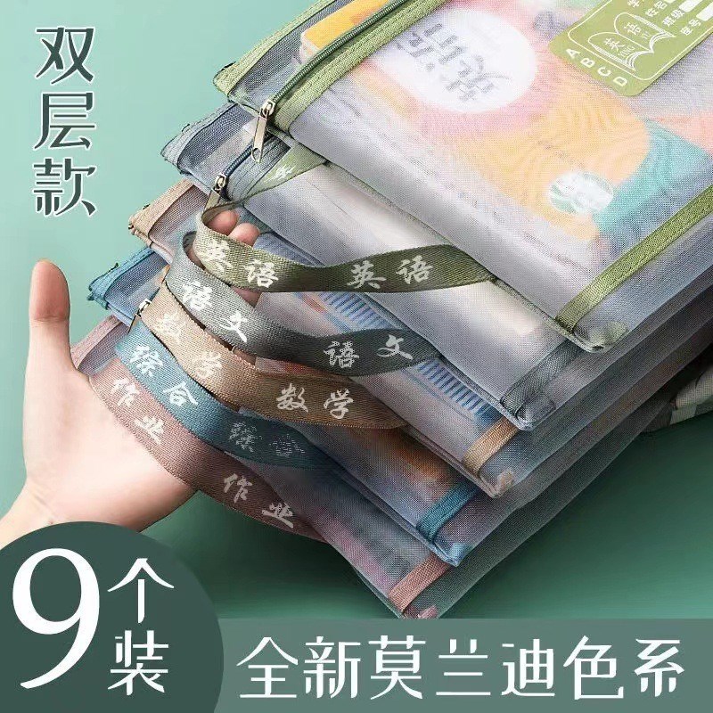 学科科目分类文件袋拉链式双层大容量小学生用资料书本课本分科书袋试卷收纳袋学生装卷子作业袋子A4透明网纱