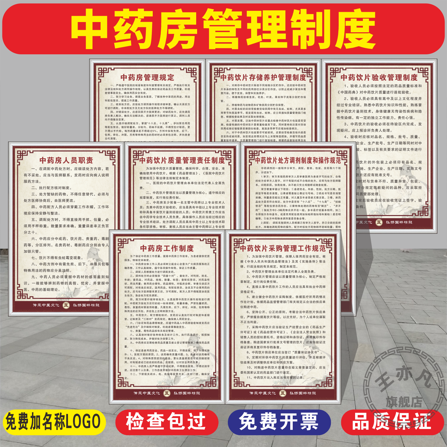 中药房工作制度中医诊所规章制度上墙人员岗位职责中药验收存储采购质量管理制度牌定制中医门诊医院规章制度