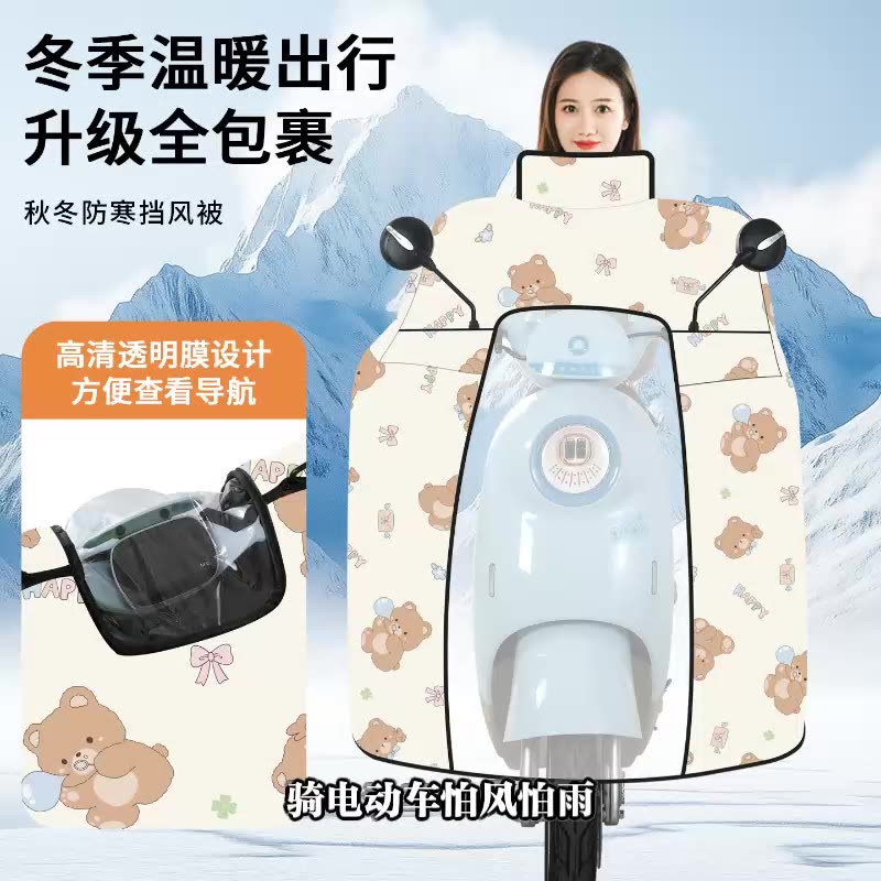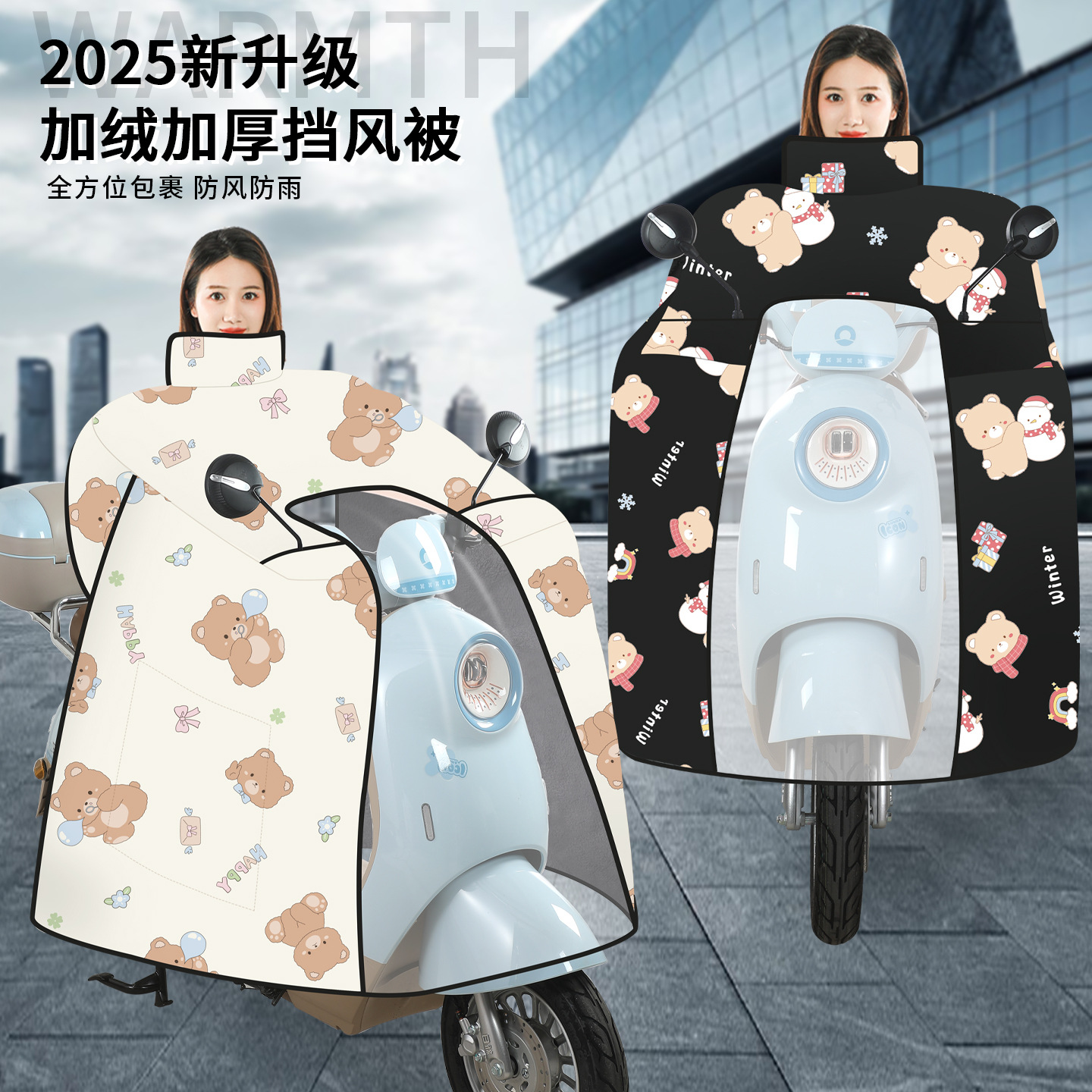 电动车挡风被冬季全包防晒防雨水罩加大加绒加厚电瓶摩托车斗篷式