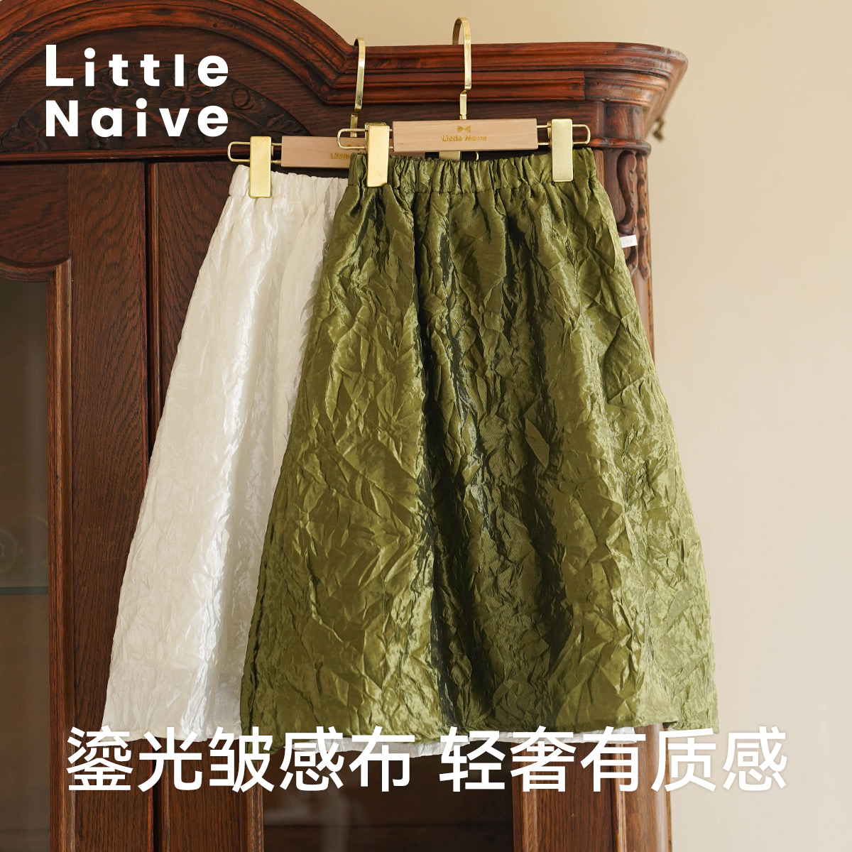 Little Naive女童半身裙春季新款皱感光泽裙子中大童法式宽松半裙