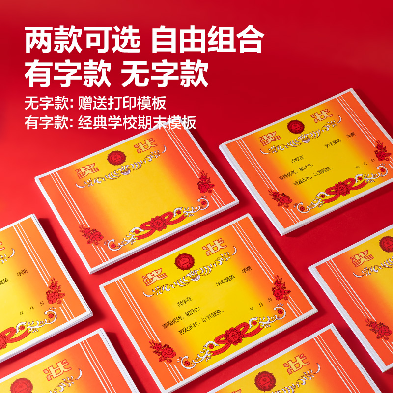 得力奖状幼儿园通用全勤宝宝可打印小学生儿童荣誉奖状a4优秀员工证书奖状纸三好学生空白模板加厚初中生考试