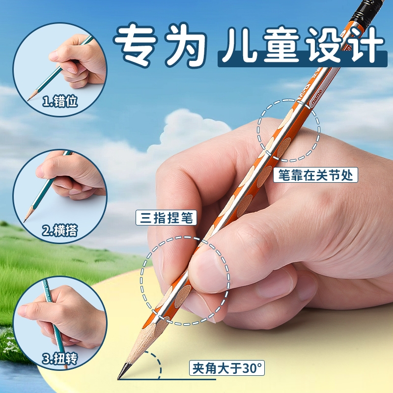 晨光洞洞铅笔小学生幼儿园一年级专用2比儿童洞洞笔2b/hb矫正握姿三角杆彩杆洞洞铅初学者橡皮无铅写字粗杆