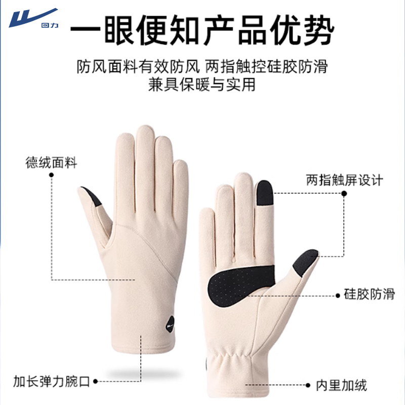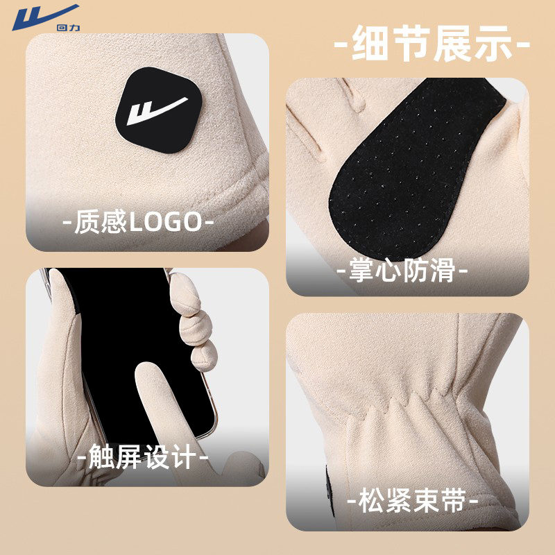 回力手套女秋冬保暖加绒加厚可触屏德绒内胆户外滑雪防滑骑行手套