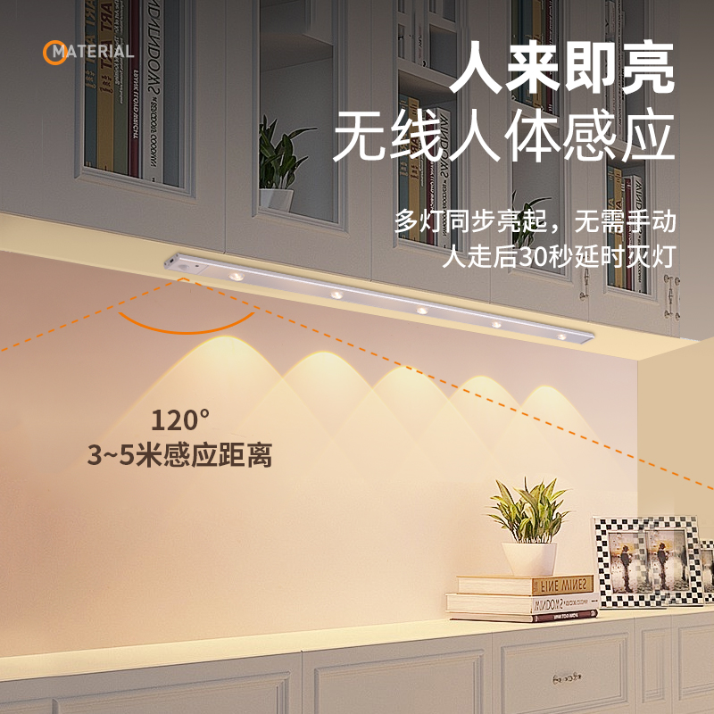 led无线自粘感应充电鞋柜橱柜灯长条波纹灯条酒柜免布线衣柜山丘