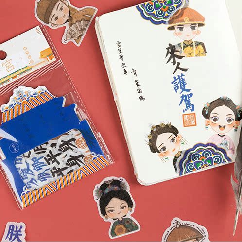 因为喜欢 国潮宫风手帐贴纸 卡通中国风可爱人物手账素材装饰贴画