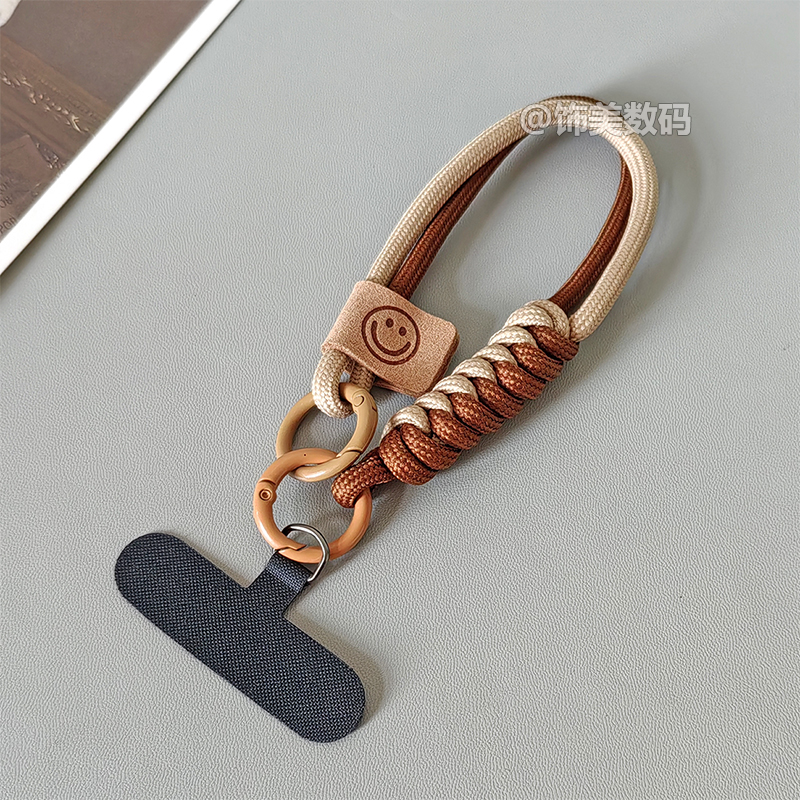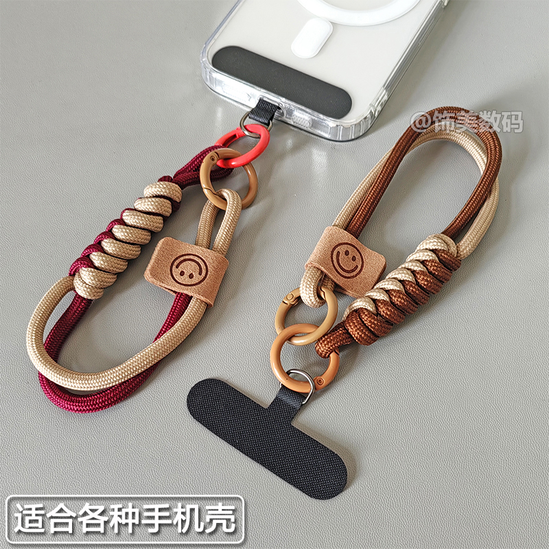 高档英伦风撞色手机挂绳编织绳笑脸手腕绳百搭手机链防丢腕带加粗男女同款时尚百搭高品质不影响手机充电