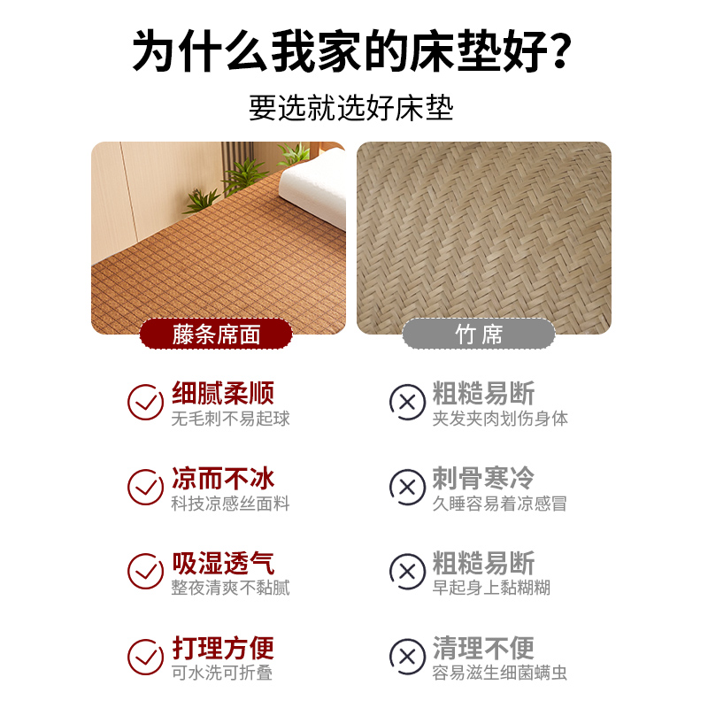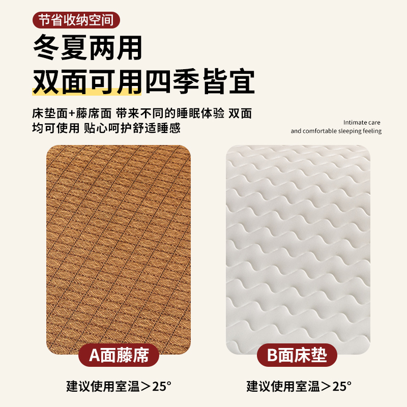 双面藤席床垫软垫学生宿舍专用0.9米凉席地垫单人床褥子两用冬夏
