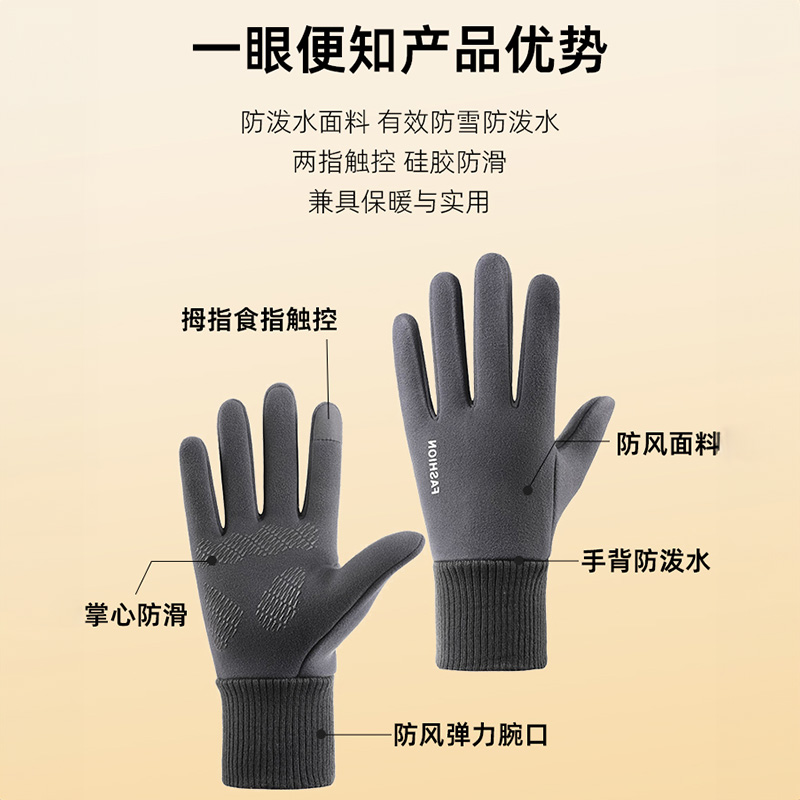 加厚德绒手套男士冬季保暖防风防寒可触屏骑行电动车棉手套女骑车