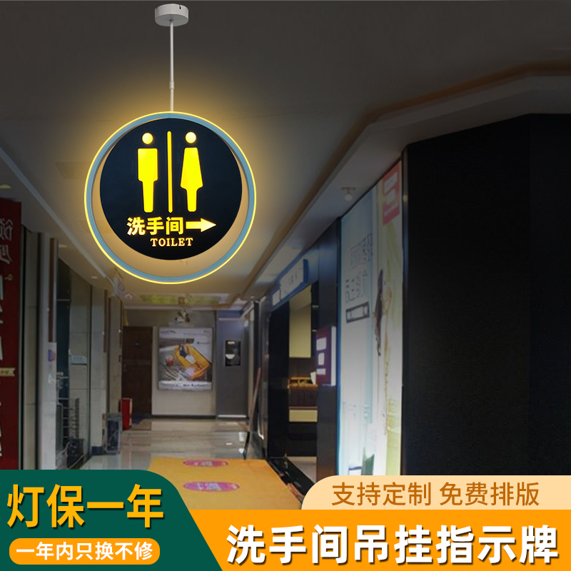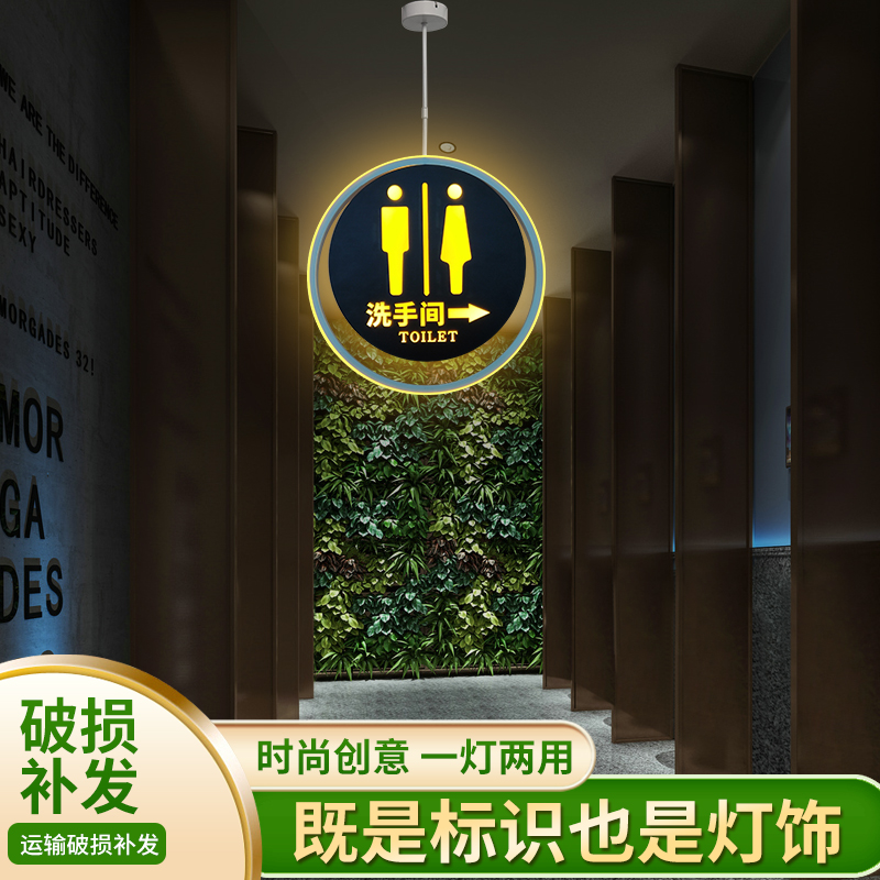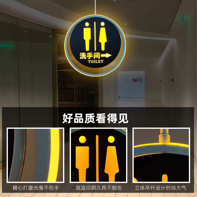 创意圆形双层发光双面洗手间左右通用厕所提示牌男女卫生间标识牌