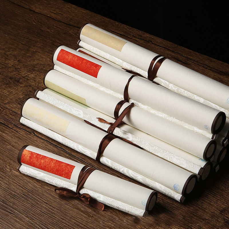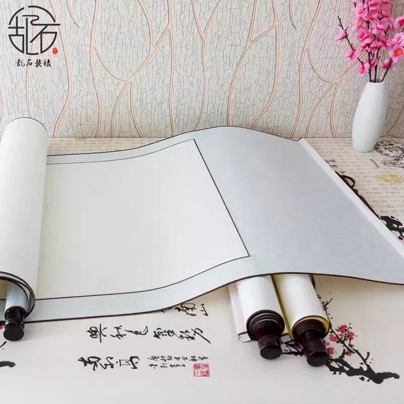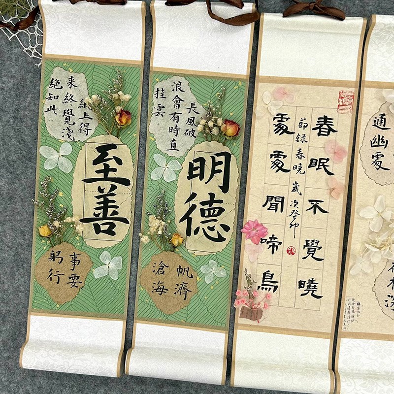 幼儿园古风中国风环创书法卷轴挂轴鎏金空白宣纸挂轴竖轴可写字