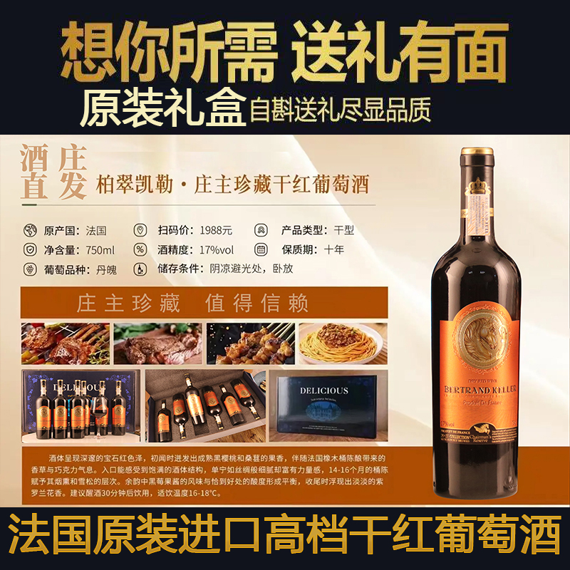 法国原装进口干红葡萄酒庄主珍藏级精品AOP红葡萄酒17度送礼红酒