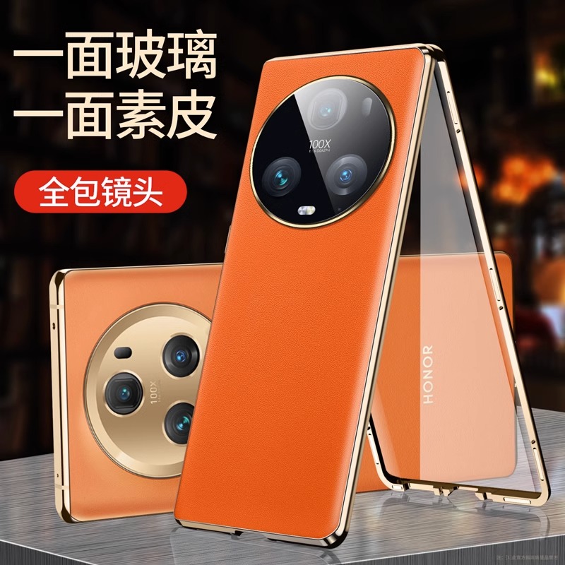 适用荣耀magic5pro手机壳migac5素皮配玻璃至臻版保护套防摔高级感华为的m5p男migc女5G魔术maigc曲面屏majic