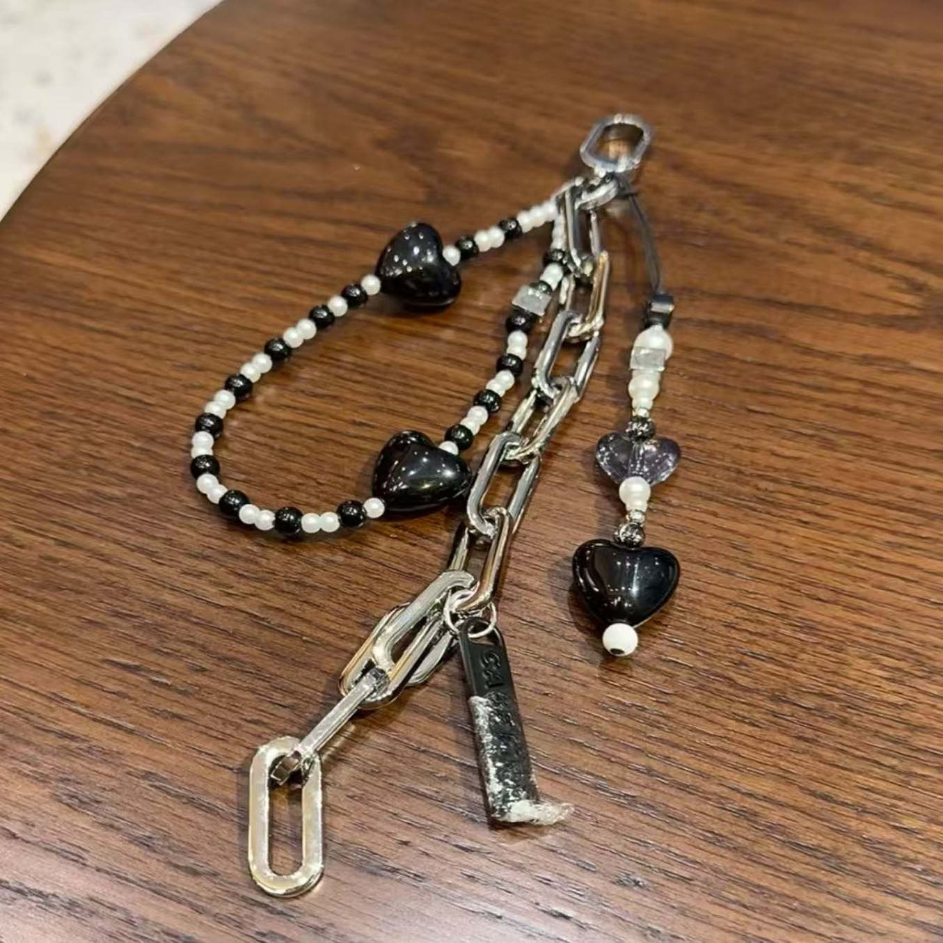 C家新款海风编织多功能风格包包挂饰黑曜链心手机配件挂绳手机链