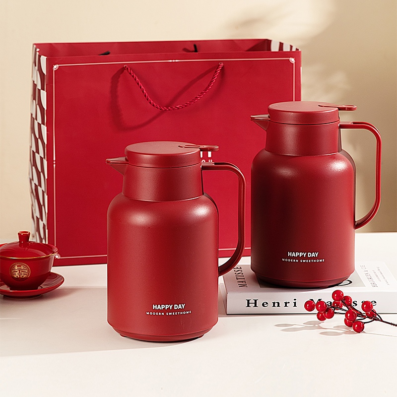 摩登主妇红色保温壶陪嫁物品女方全套水壶结婚一对新婚礼物热水瓶