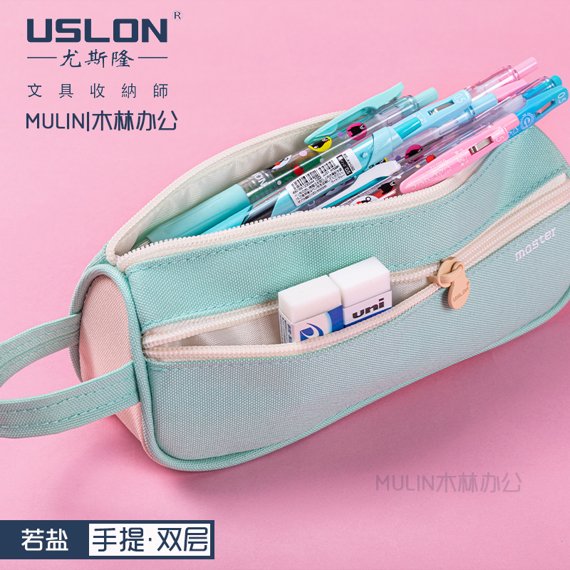 USLON尤斯隆若盐大容量文具袋多功能收纳学生糖果色铅笔袋手提