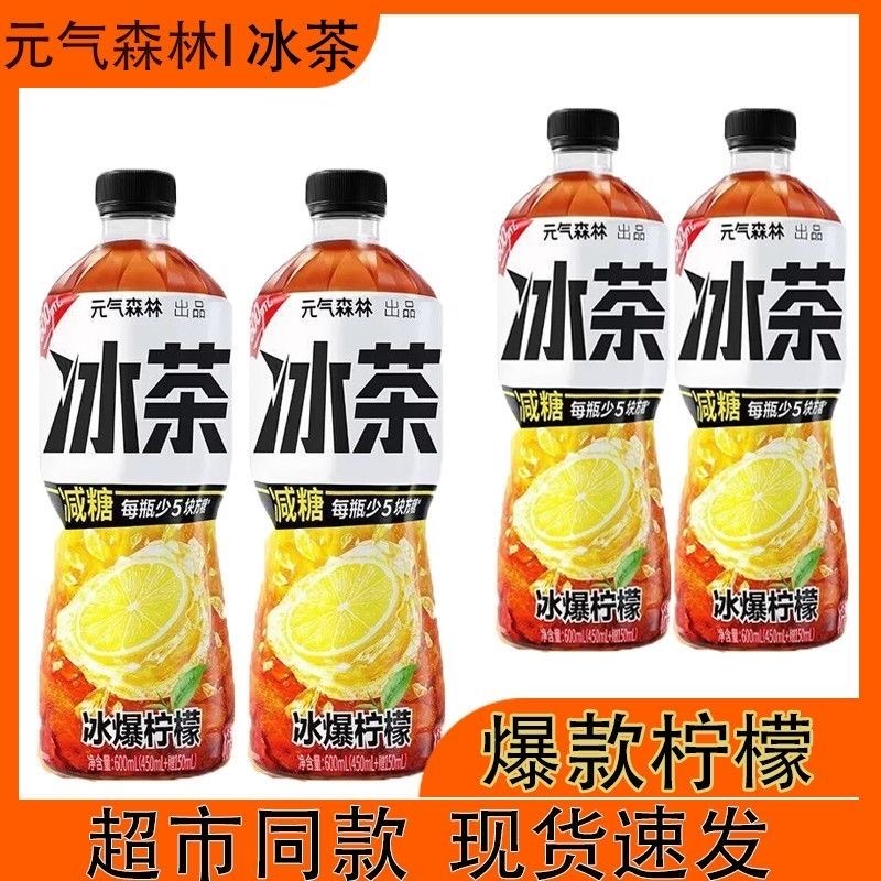 元气森林冰茶冰爆柠檬600ml*5瓶加量版减糖饮品饮料茶饮料