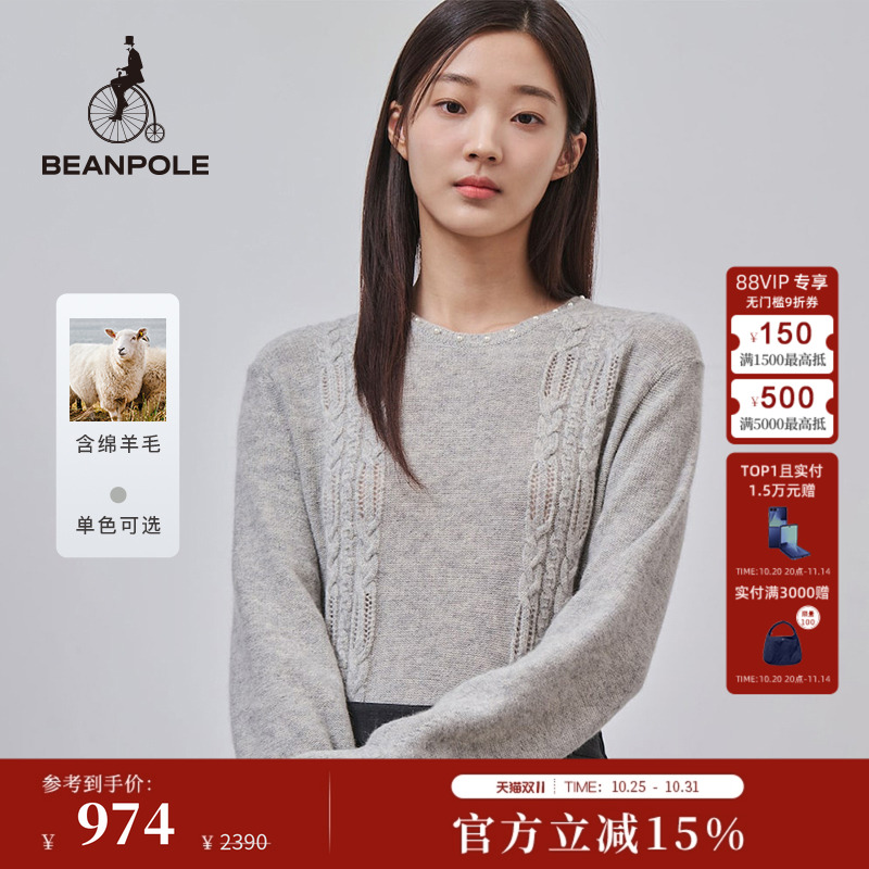 含羊驼毛绵羊毛 BEANPOLE滨波 秋冬女士知识分子风毛衣针织衫