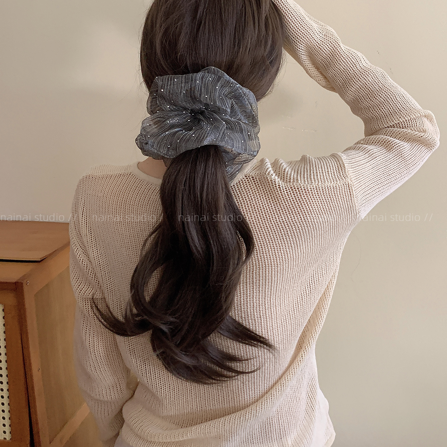 满天星大肠发圈~闪钻泡泡纱高级感条纹法式复古发绳韩国ins风头绳