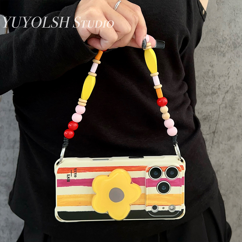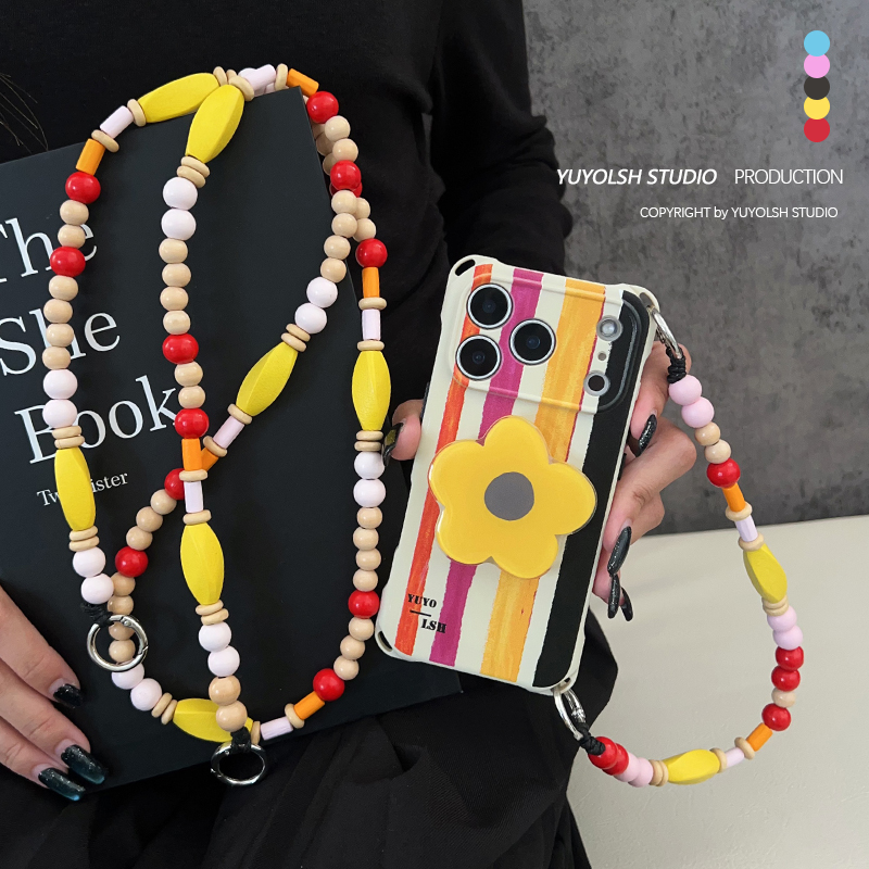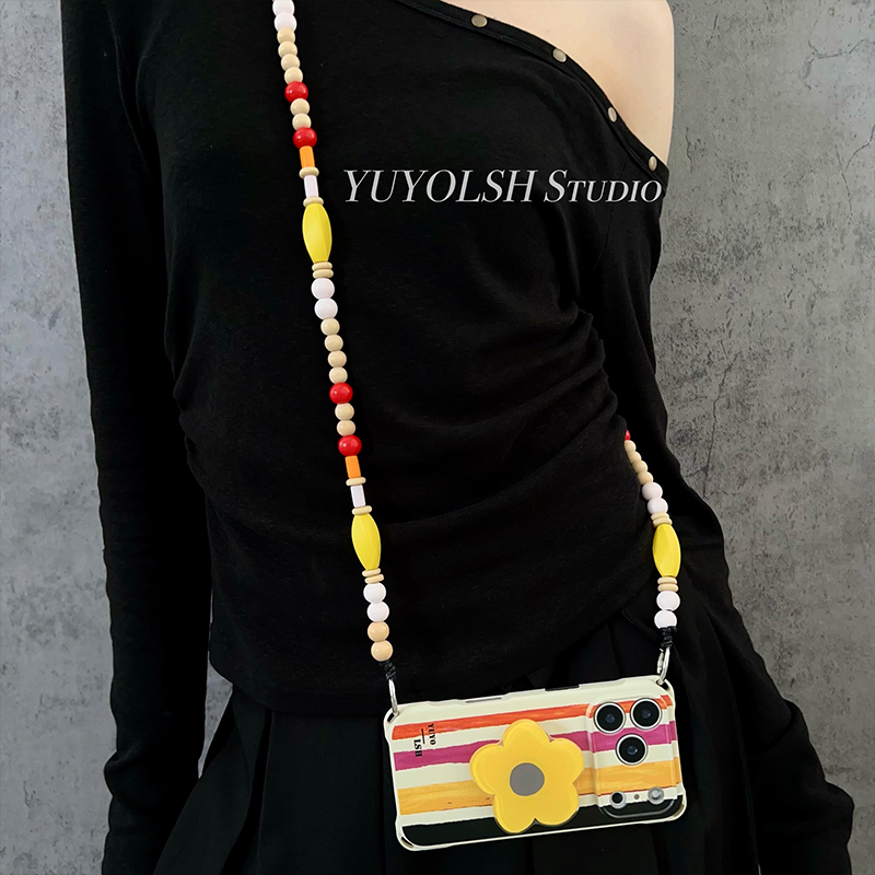 【自由随性】原创斜挎积木链条适用于苹果17Pro手机壳彩条纹小米15ultra花朵支架华为mate70Pro背带斜跨链条