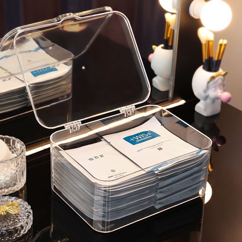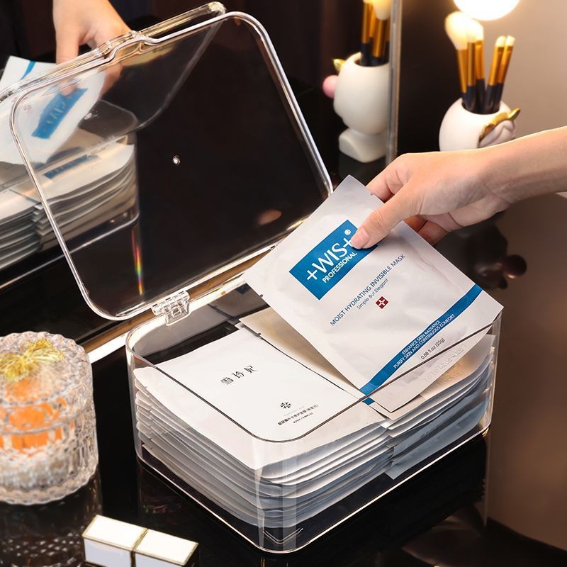 透明亚克力面膜盒翻盖收纳盒家用网红化妆品防尘收纳盒大容量带盖