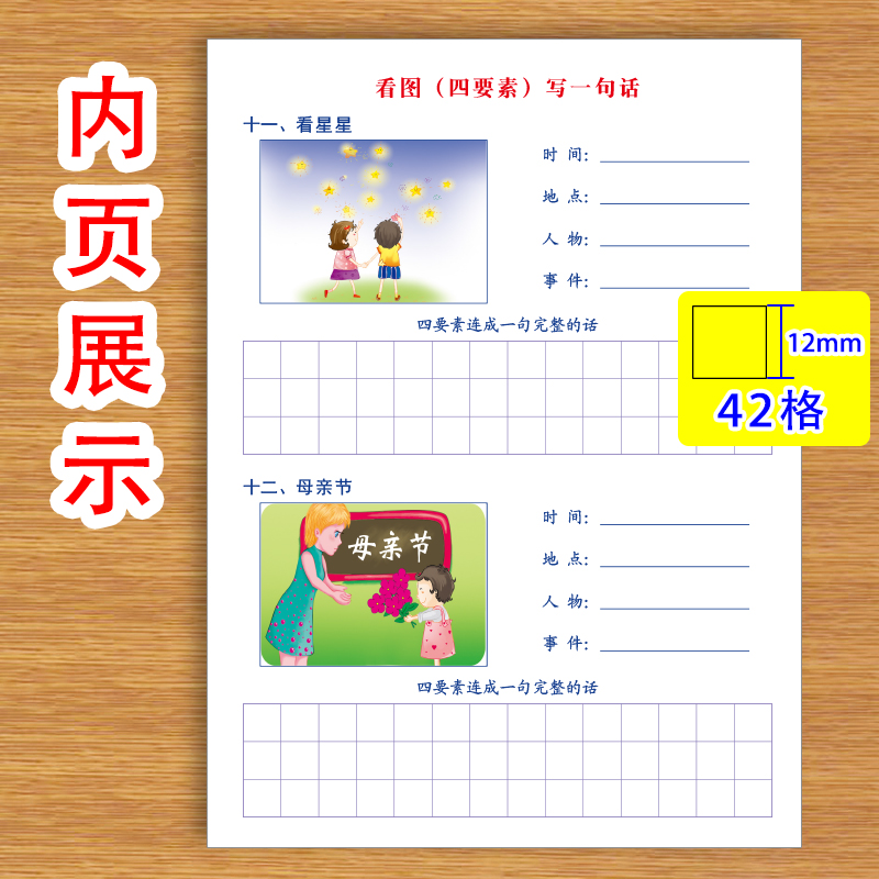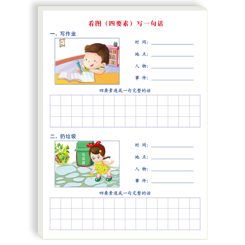 四要素五要素看图写一句话一段话小学生一二年级分步式写时间地点人物干什么四要素连成一句话练习纸