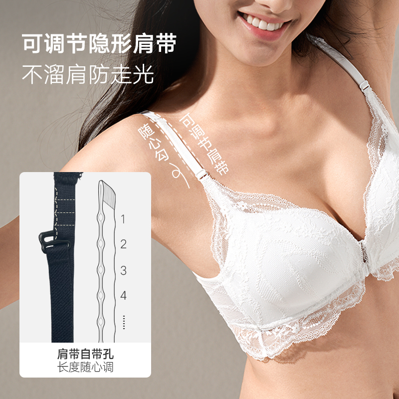 曼妮芬无钢圈双排前扣美背小胸聚拢文胸性感蕾丝露背女士白色内衣