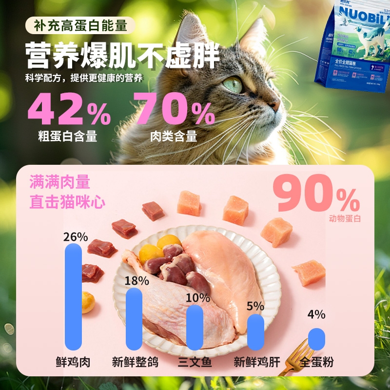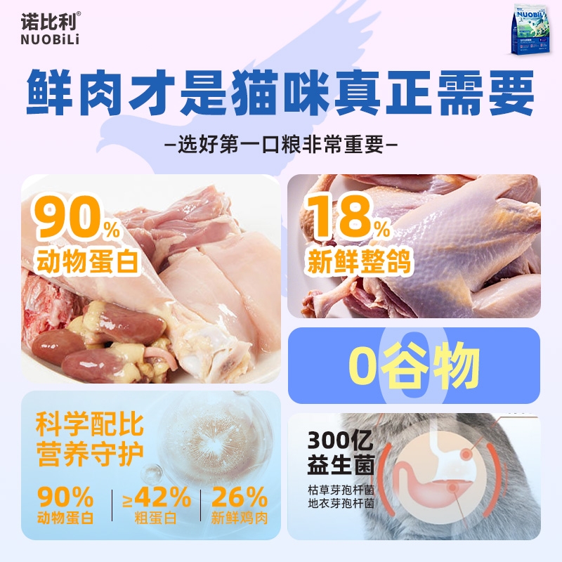 诺比利鲜肉无谷乳鸽猫粮增肥发腮夹心成幼猫通用10斤全价正品猫粮