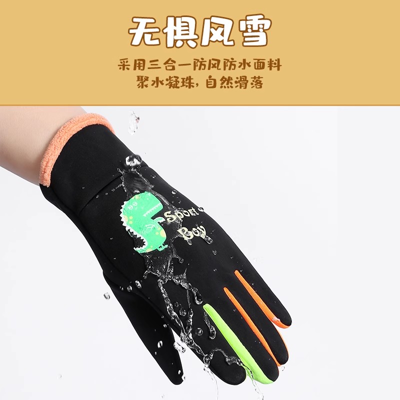 手套儿童秋冬季加厚加绒保暖小学生男童女孩骑车防风防水户外骑行