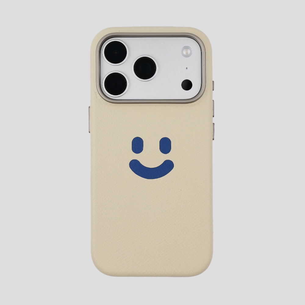 阿慕良品MESAP真皮头层牛皮全包笑脸系列高级原创时尚适用于iPhone17ProMax高端磁吸手机保护壳