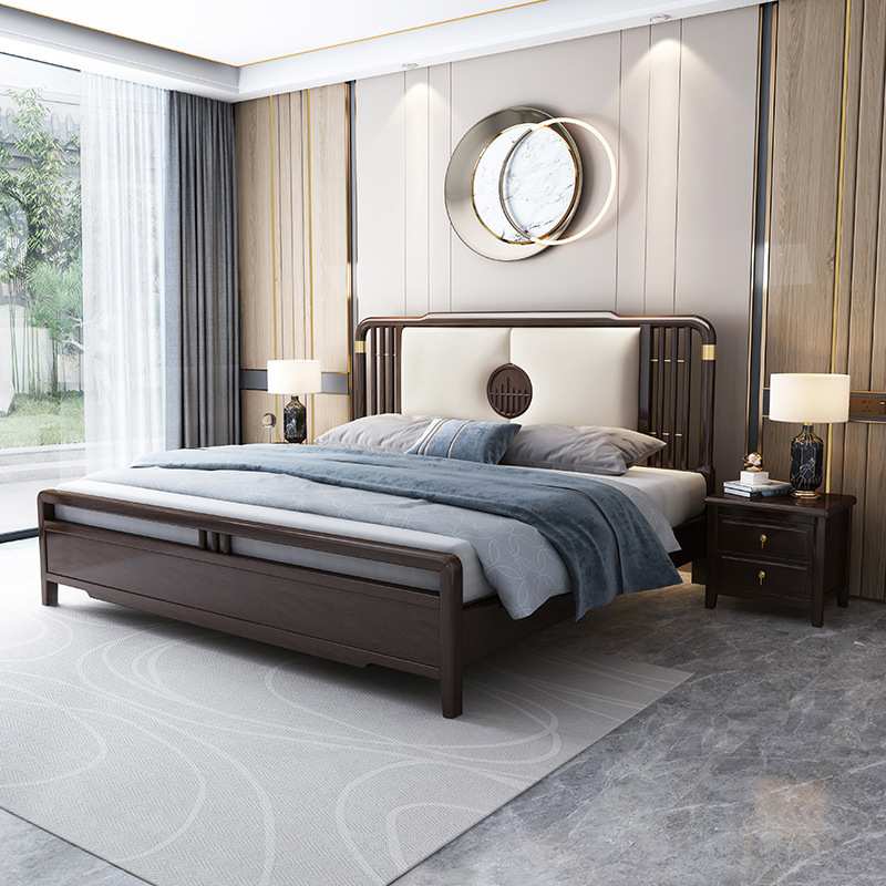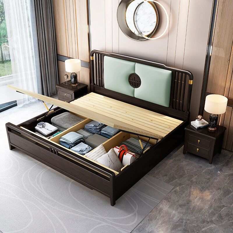 新中式实木床1.5m1.8米双人床紫金檀木卧室软靠床高箱抽屉储物床