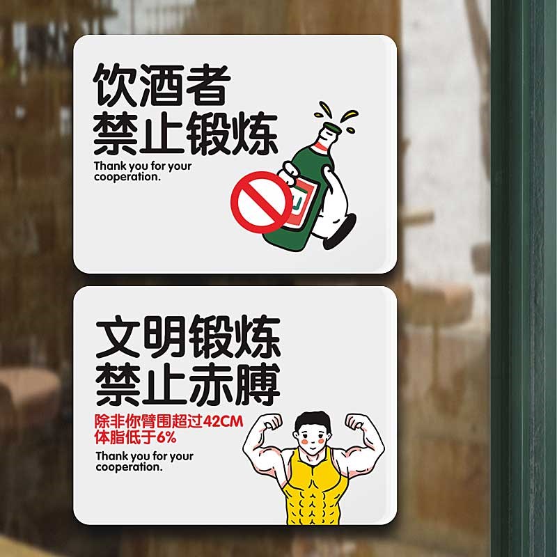 健身时如有不适请立刻停止运动警示D牌注意安全饮酒者禁止锻炼赤