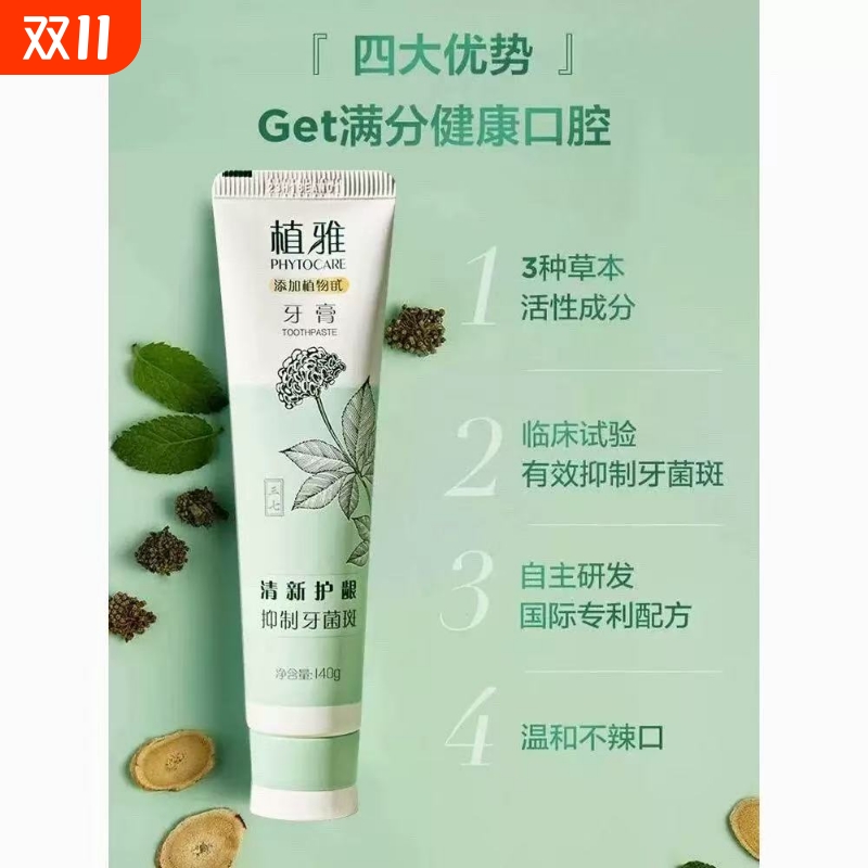 正品薄荷植物味牙膏清新口气去牙渍牙菌斑亮齿护龈上火口臭肿痛