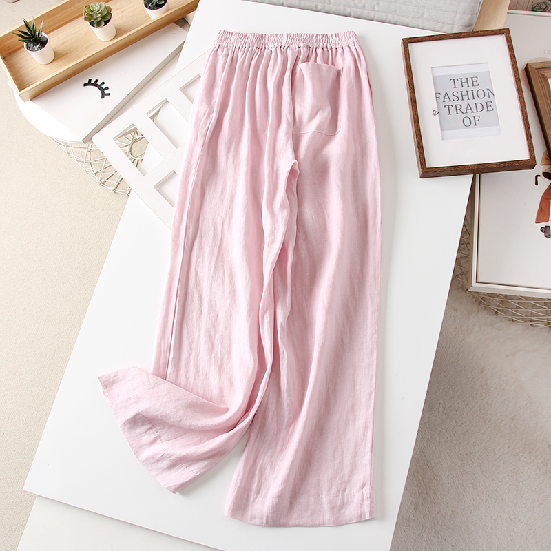 2025新品 透气含亚麻混纺阔腿轻薄宽松通勤松紧腰 女直筒休闲长裤
