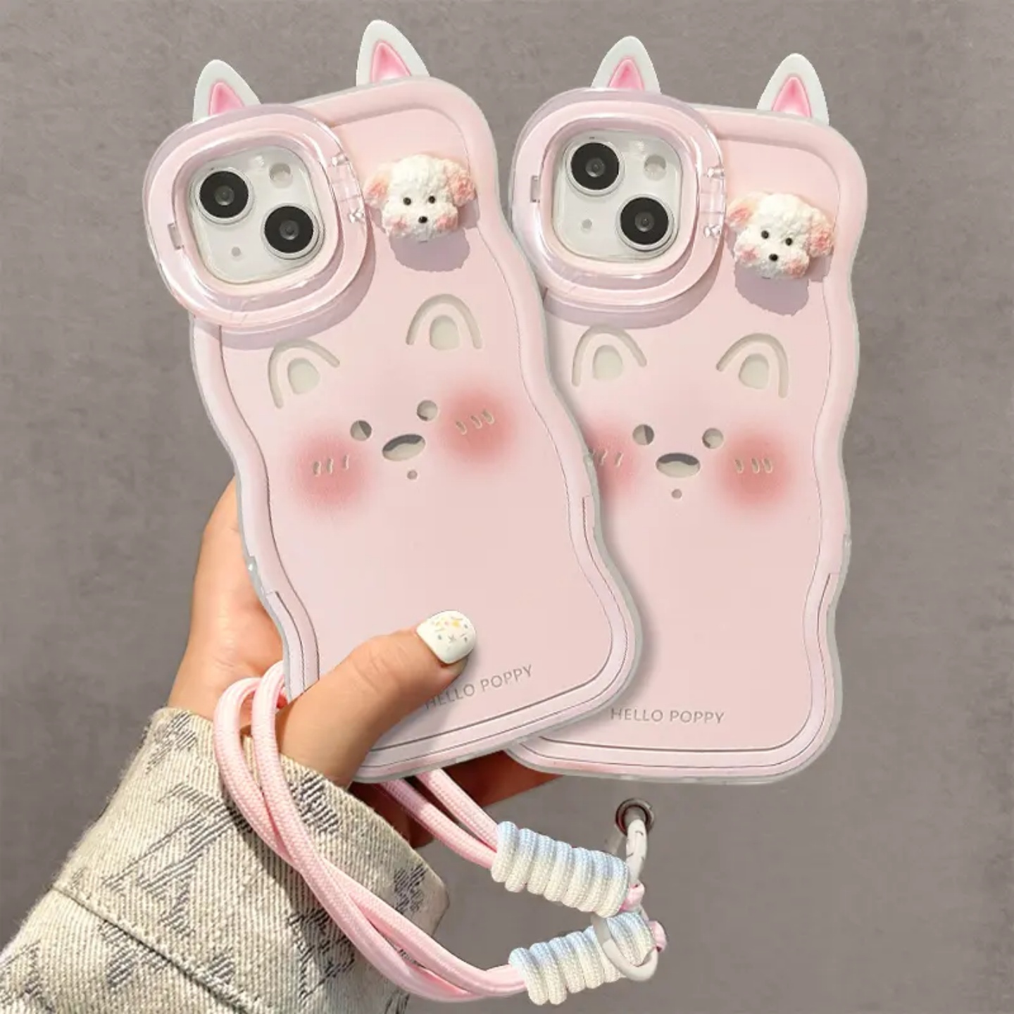 粉小狗板凳双支架适用苹果/华为荣耀/oppo/vivo/小米手机壳新款2025网红爆款17promax不会撞壳mate70可爱外壳