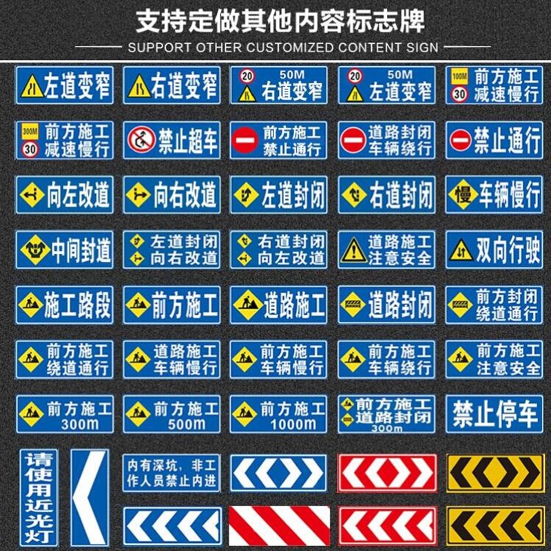 前方道路施工牌交通安全标志警示牌工程H告示牌导向反光指示牌订