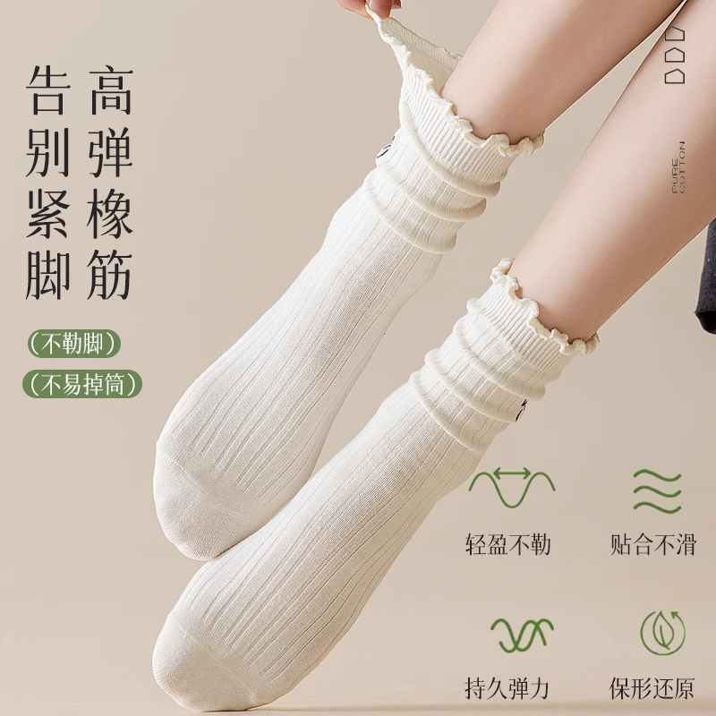 袜子女款纯棉中筒袜秋冬季抗菌防臭吸汗运动棉袜春秋款无骨短筒袜