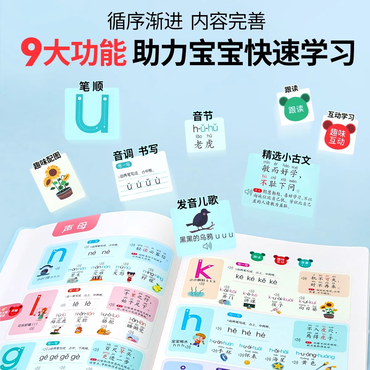 学前拼音一点就会读点读发声书 汉语拼音拼读训练学习神器会说话的早教有声书幼小衔接幼儿有声读物一年级儿童声母韵母有声书启蒙