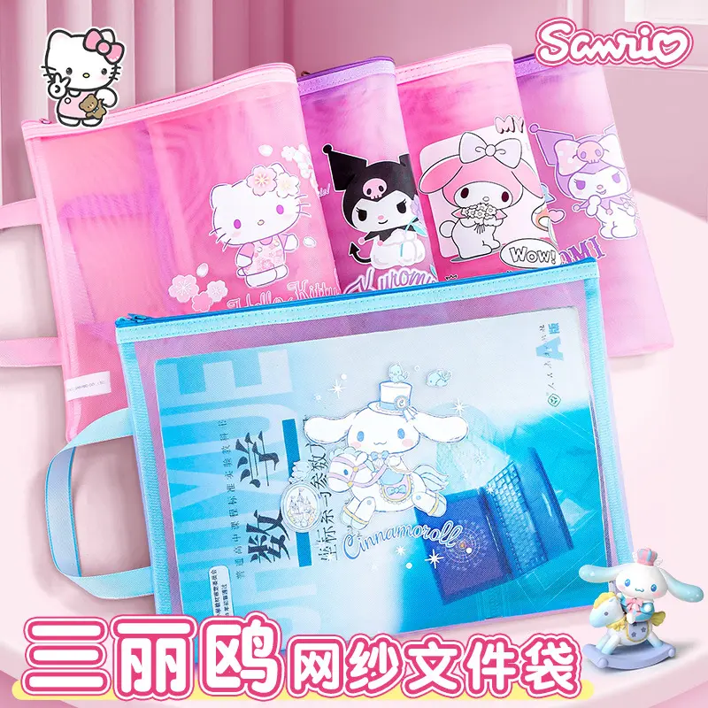 学科科目分类文件袋拉链式双层大容量小学生用资料书本课本分科书袋试卷收纳袋学生装卷子作业袋子A4透明网纱