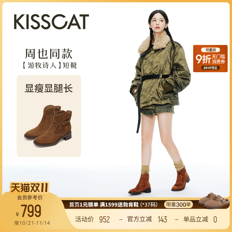 [周也/孟佳同款]接吻猫[游牧诗人]短靴25新美拉德西部时装靴踝靴