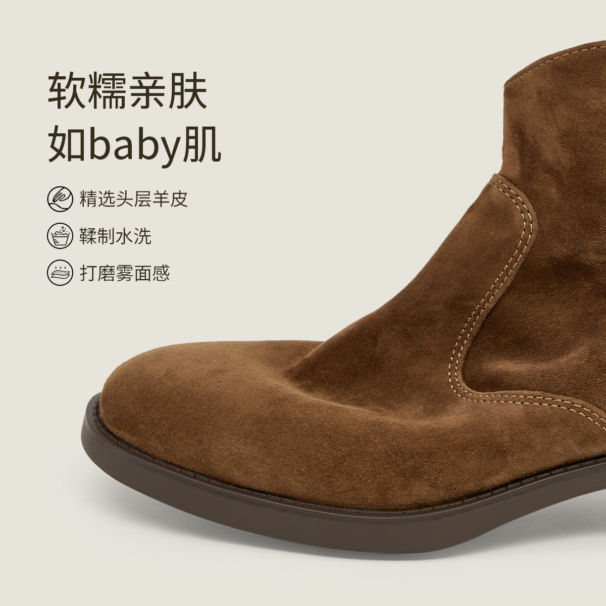 羊皮版!西部褶皱短靴女堆堆靴复古英伦风小个子内增高中筒马丁靴