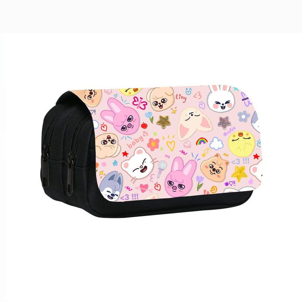 跨境批发Stray Kids skzoo印花双层笔袋 韩国男团中小学生文具袋