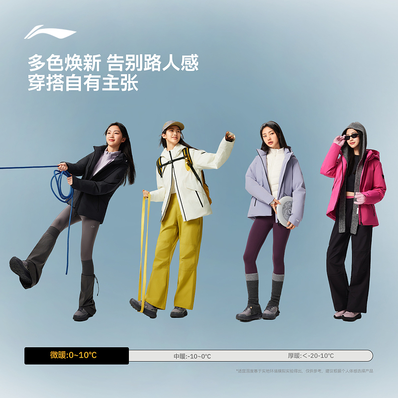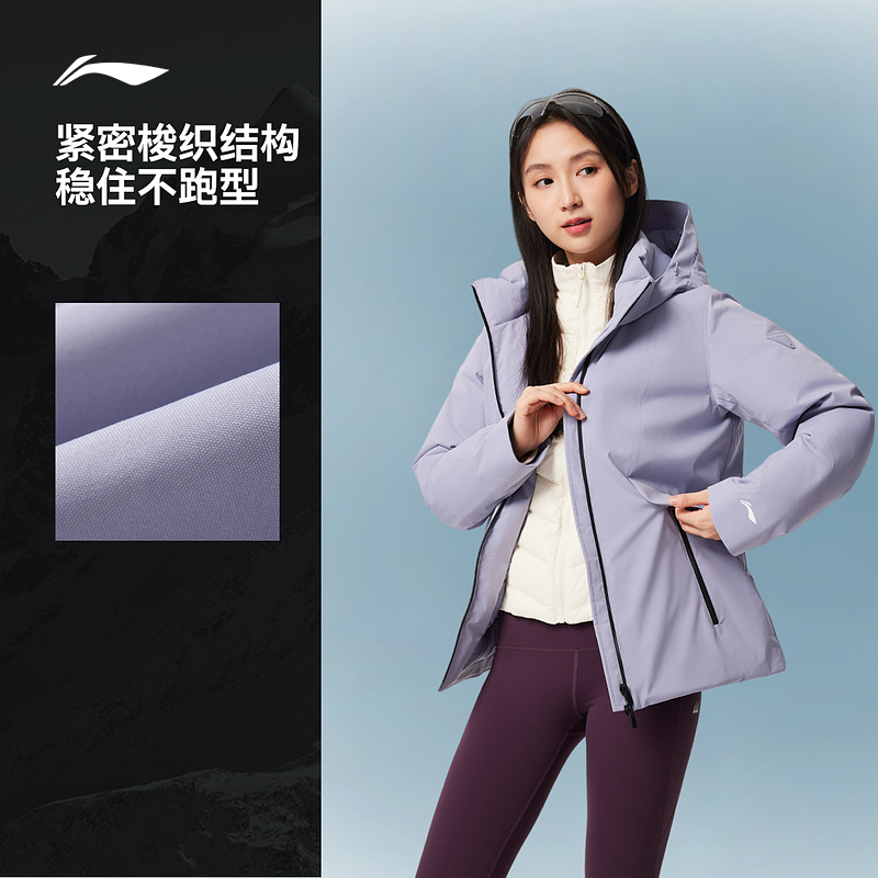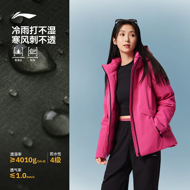 李宁火锅羽绒 女子反光防风排湿防泼水保暖御寒85%鹅绒中羽绒服