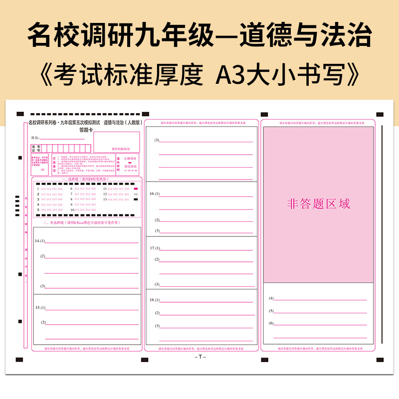 名校调研系列卷 九年级第五次模拟测试 道德与法治(人教版) 120g双胶纸/A3大小/考前练手模拟答题卡