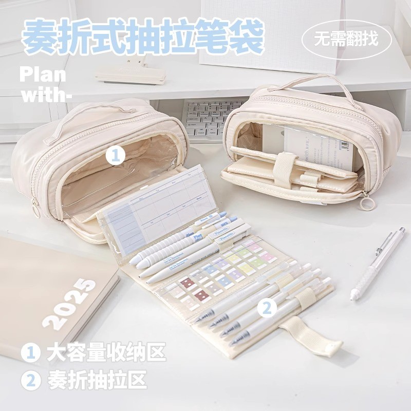 笔袋超大容量文具盒多功能铅笔袋2025新款ins风高颜值暗藏玄机的笔盒黑色女孩男孩小学生初中生学霸简约透明