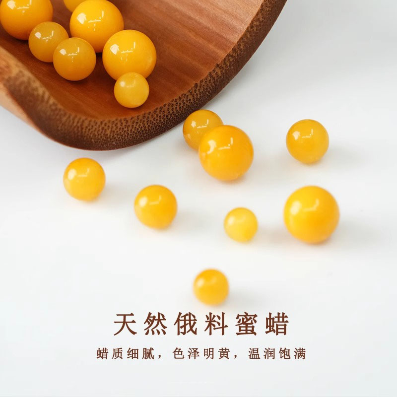 蜜蜡散珠单珠子琥珀鸡油黄手链配珠串珠保真diy配件材料玉石