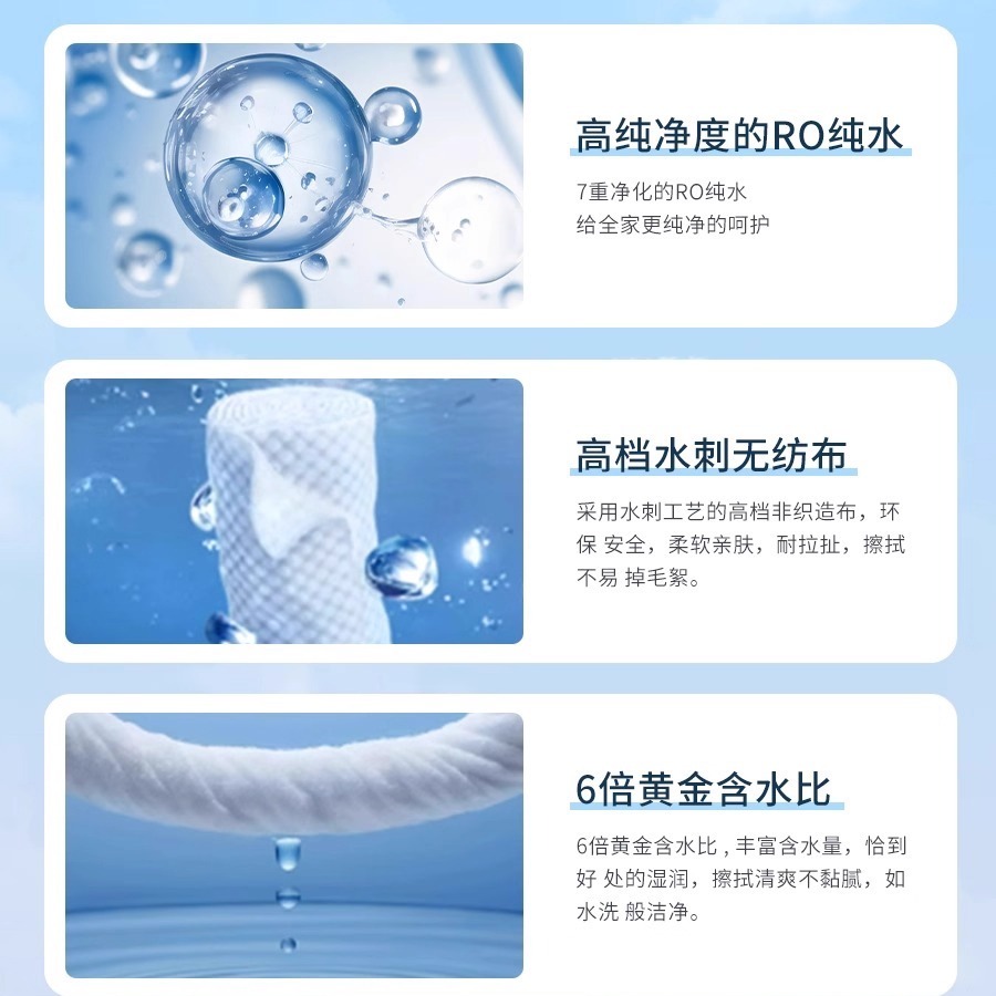 蓝漂白桃湿巾新生幼儿宝宝手口屁可用亲肤水润湿纸巾大包装